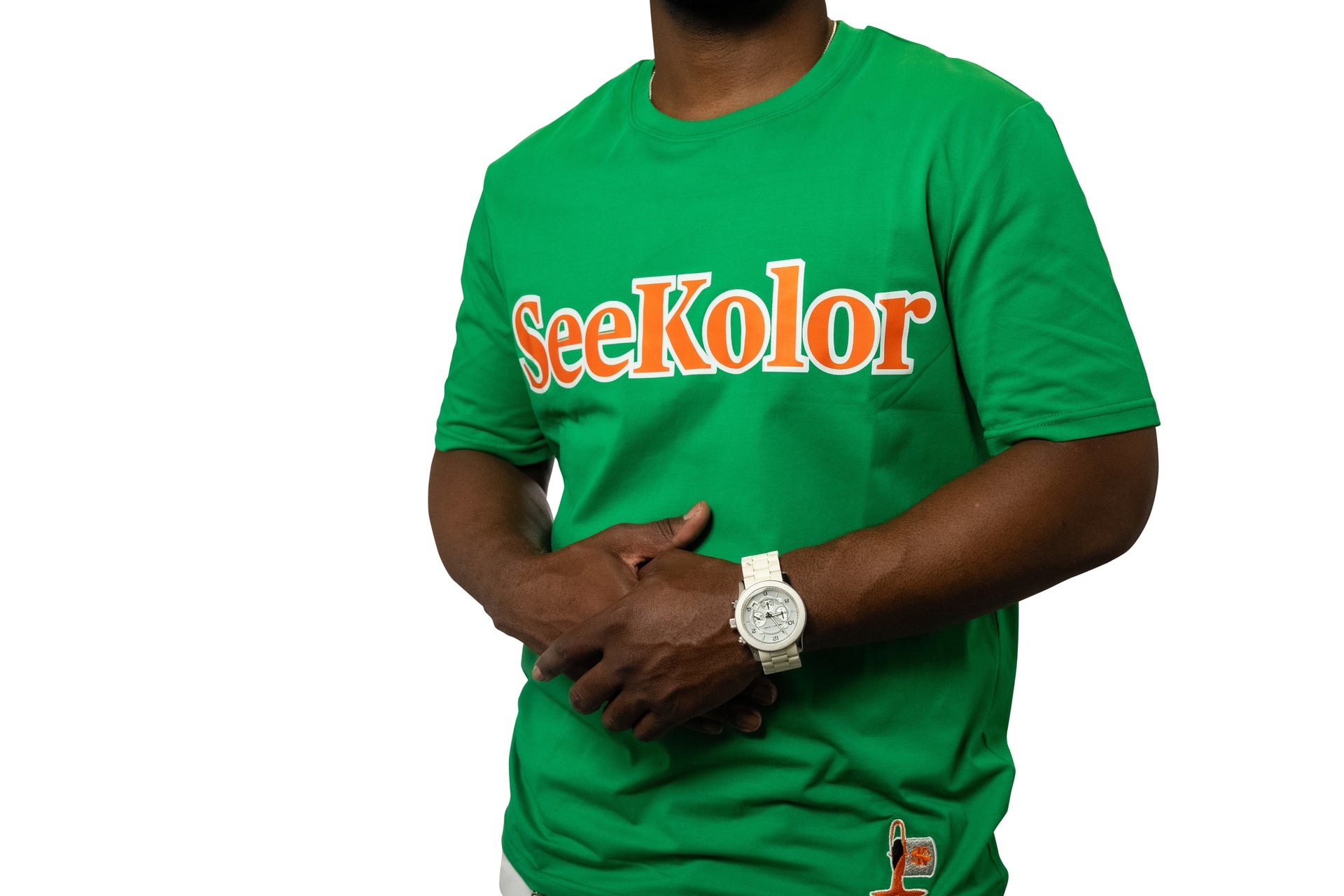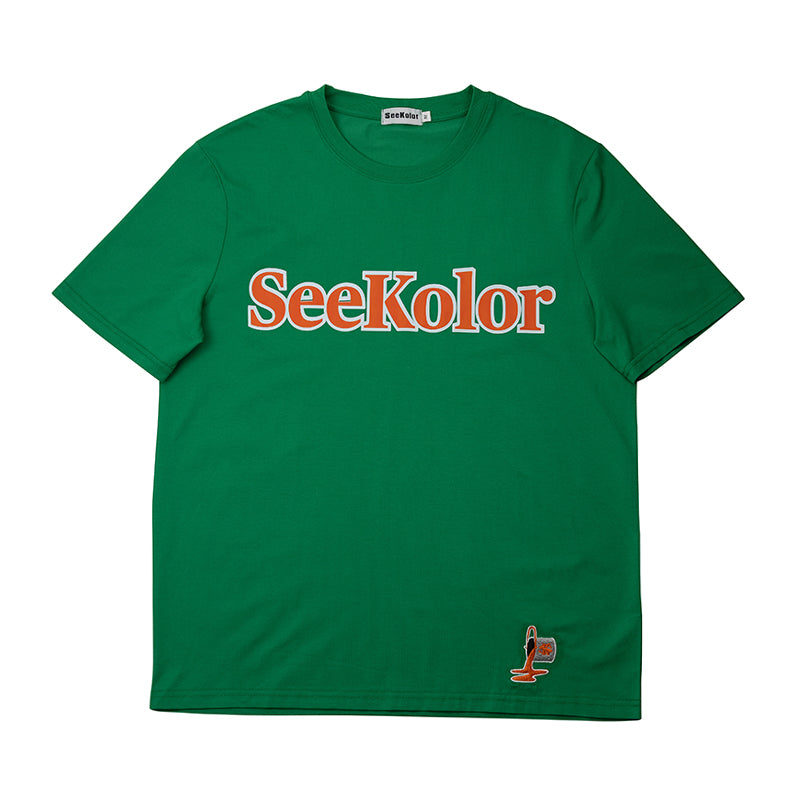 Green shirt with orange letters Cotton & polyester blend slim fit tight around the arm